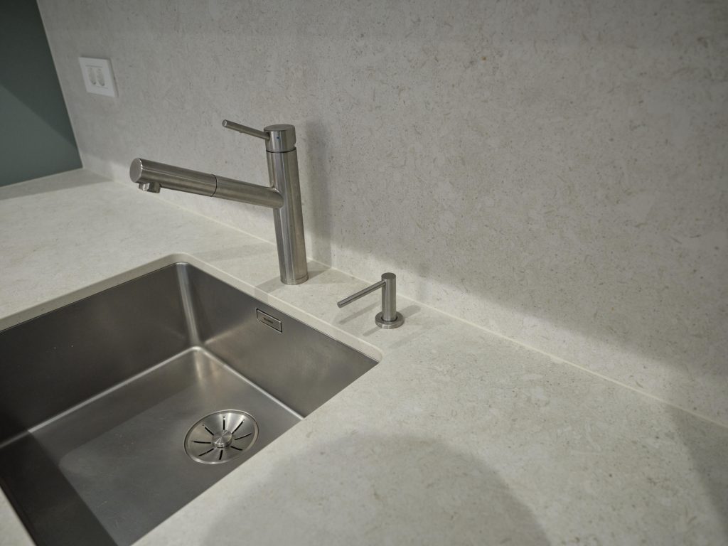 V tehnični kamen smo vgradili pod pultno korito.